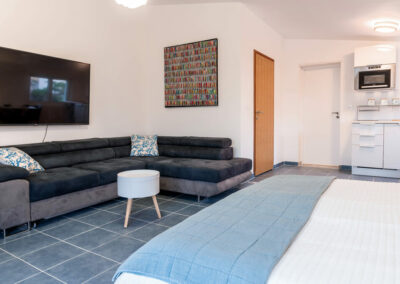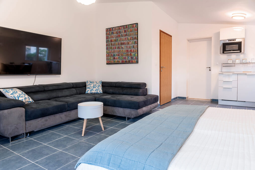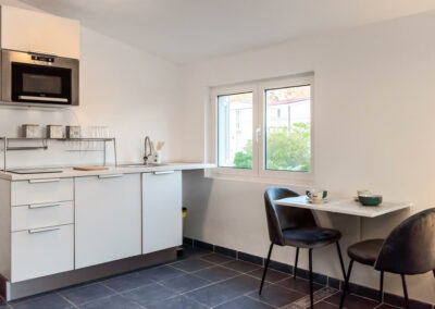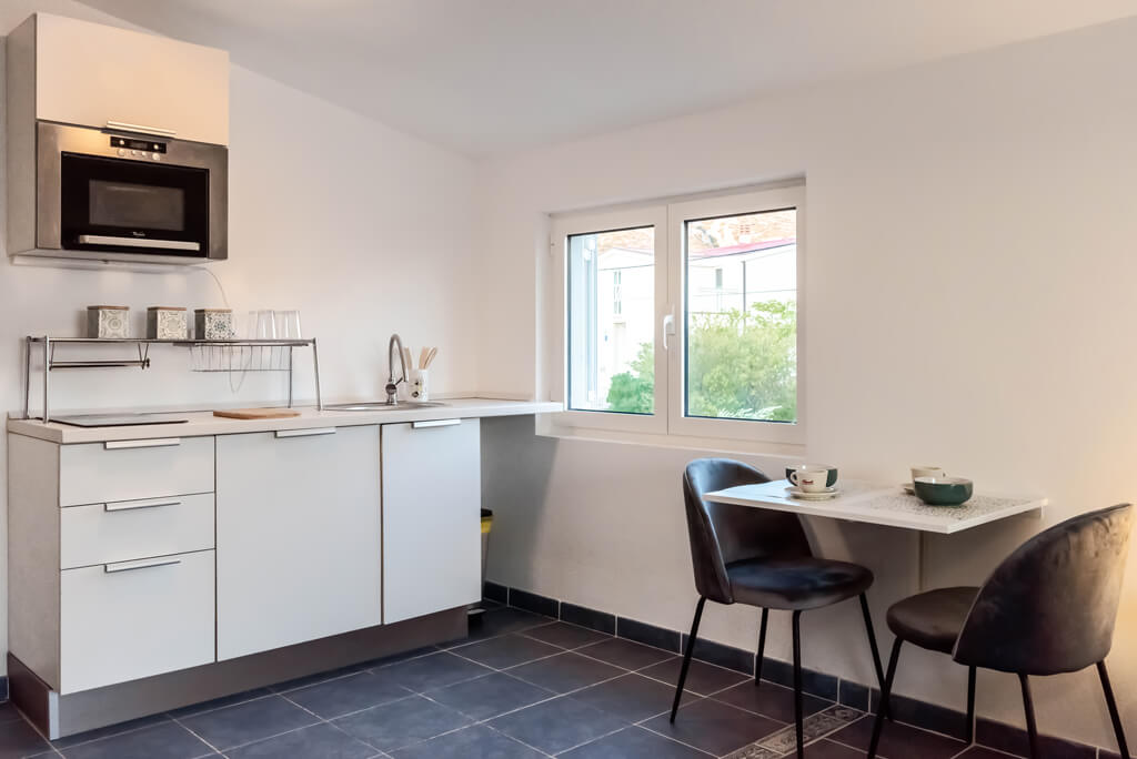 Felszereltség: teljesen felszerelt konyha és fürdőszoba, klíma, emeleti, teraszos, ingyenes parkolás
